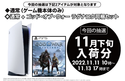 PS5抽選。WonderGOO、通常版本体と「ゴッド・オブ・ウォー ラグナロク同梱版」対象に11月13日まで受付!(1/1)