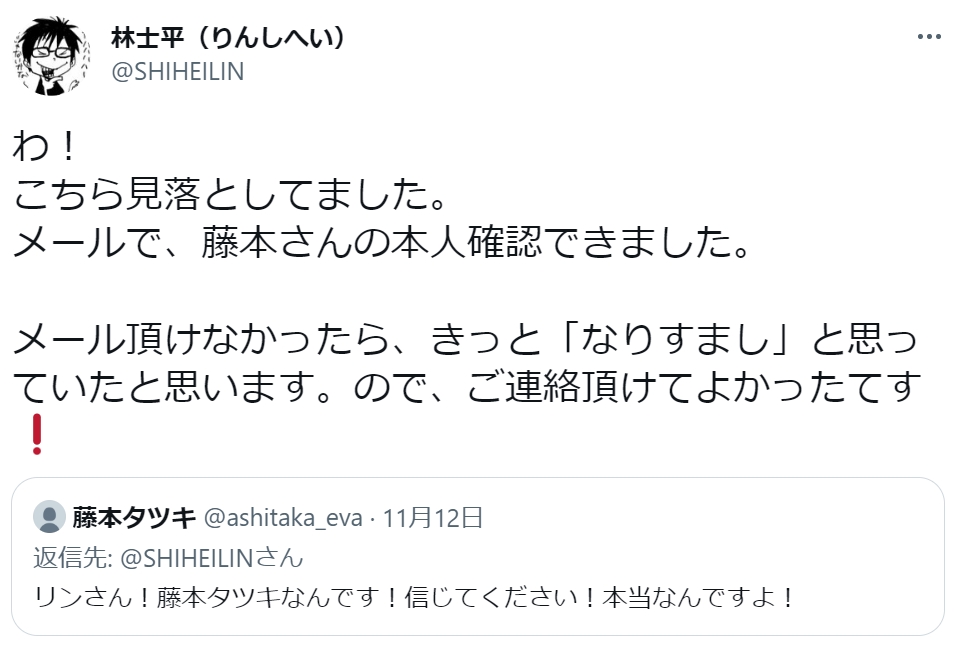 「チェンソーマン」藤本タツキ氏によるTwitterアカウント「ながやま こはる」復活!