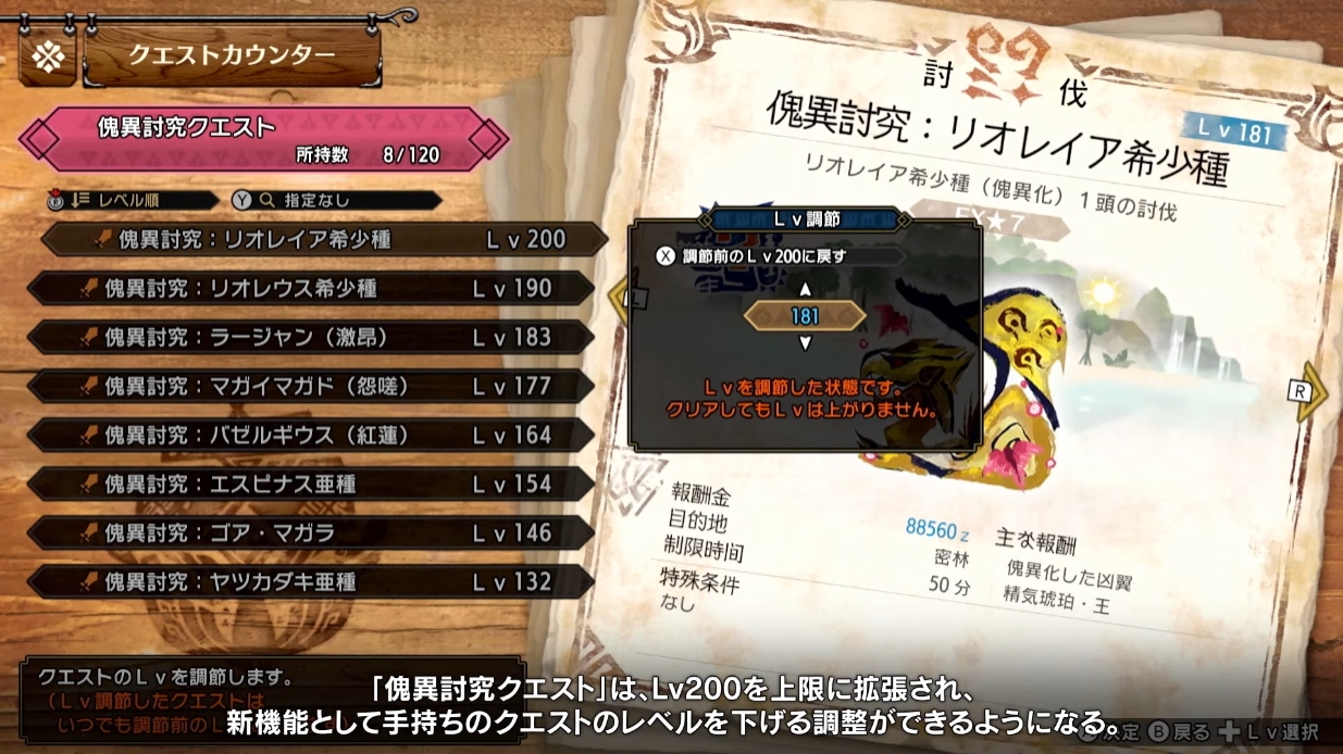 「モンハンライズ:サンブレイク」、「傀異討究クエスト」の上限がLv.200まで解放!(2/5)