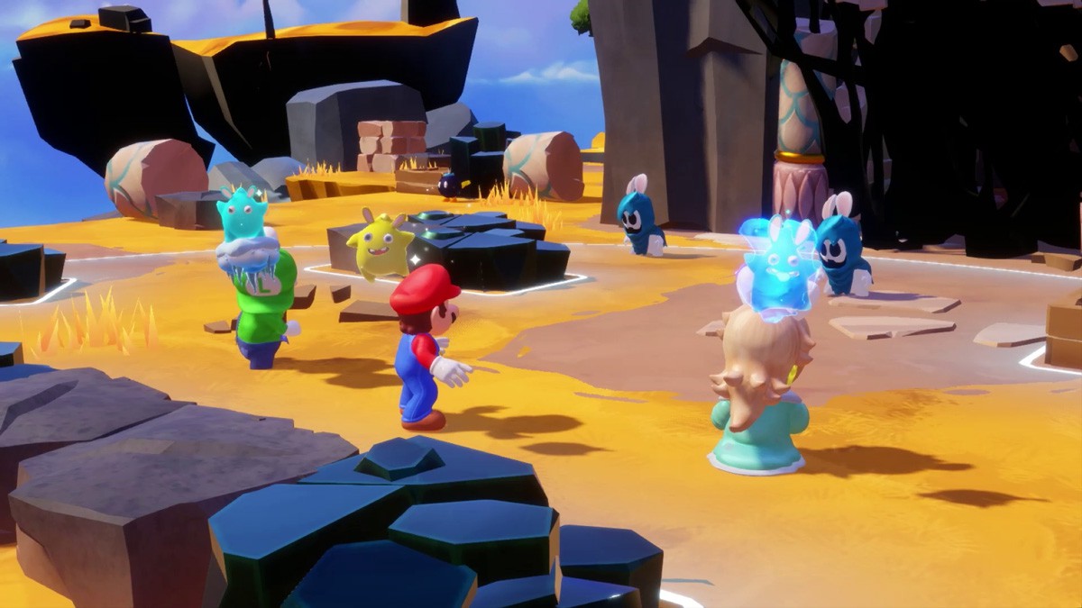 MARIO + RABBIDS GALAXY BATTLE © 2022 Ubisoft Entertainment. All Rights Reserved. Rabbids, Ubisoft and the Ubisoft logo are registered or unregistered trademarks of Ubisoft Entertainment in the U.S. and/or other countries. Nintendo properties are licensed to Ubisoft Entertainment by Nintendo. SUPER MARIO characters © Nintendo. Trademarks are property of their respective owners. Nintendo Switch is a trademark of Nintendo.