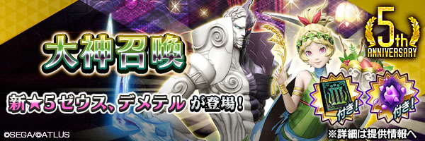 「D×2 真・女神転生リベレーション」5周年記念悪魔は「魔神 ゼウス」と「女神 デメテル」!(2/14)