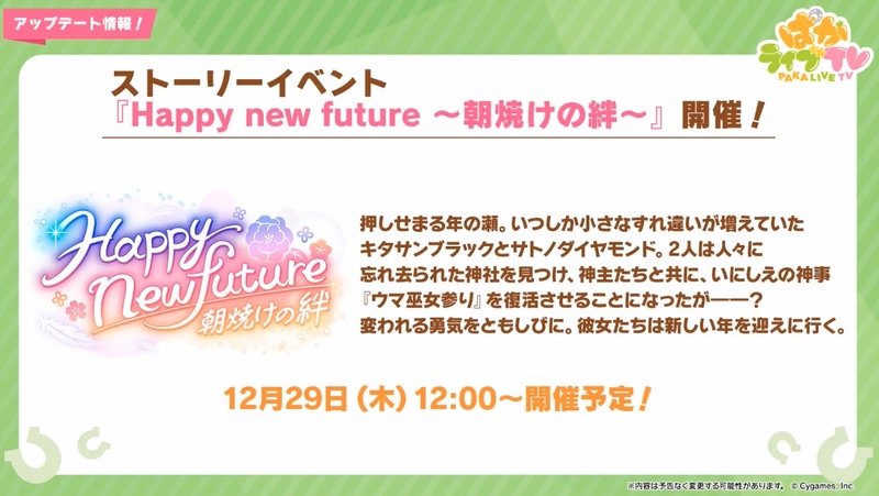 「ウマ娘」、ストーリーイベント「Happy new future 〜朝焼けの絆〜」を12月29日12時より開催!(1/3)