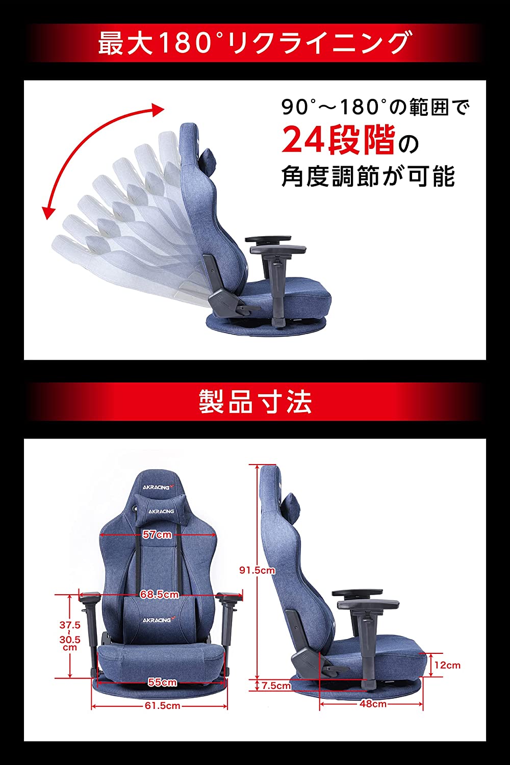 • AKRacing ゲーミング 座椅子 極坐(ぎょくざ) デニム Gyokuza Denim 国産デニム素材採用 180度リクライニング 在宅 リモート 5年保証