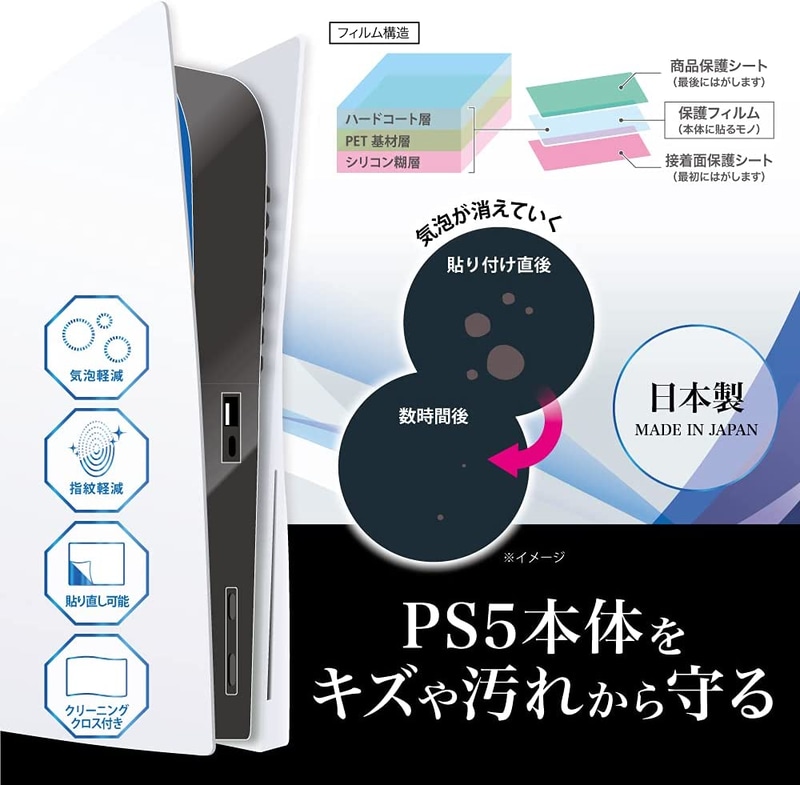 • アンサー PS5用本体保護フィルム【光沢面保護/日本製フィルム/キズ防止/ホコリ対策/気泡軽減/指紋防止加工/PS5両エディション対応】