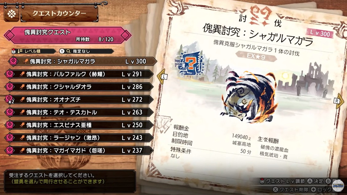 「モンハンライズ:サンブレイク」、「傀異討究クエスト」の上限がLv.300まで解放(2/18)