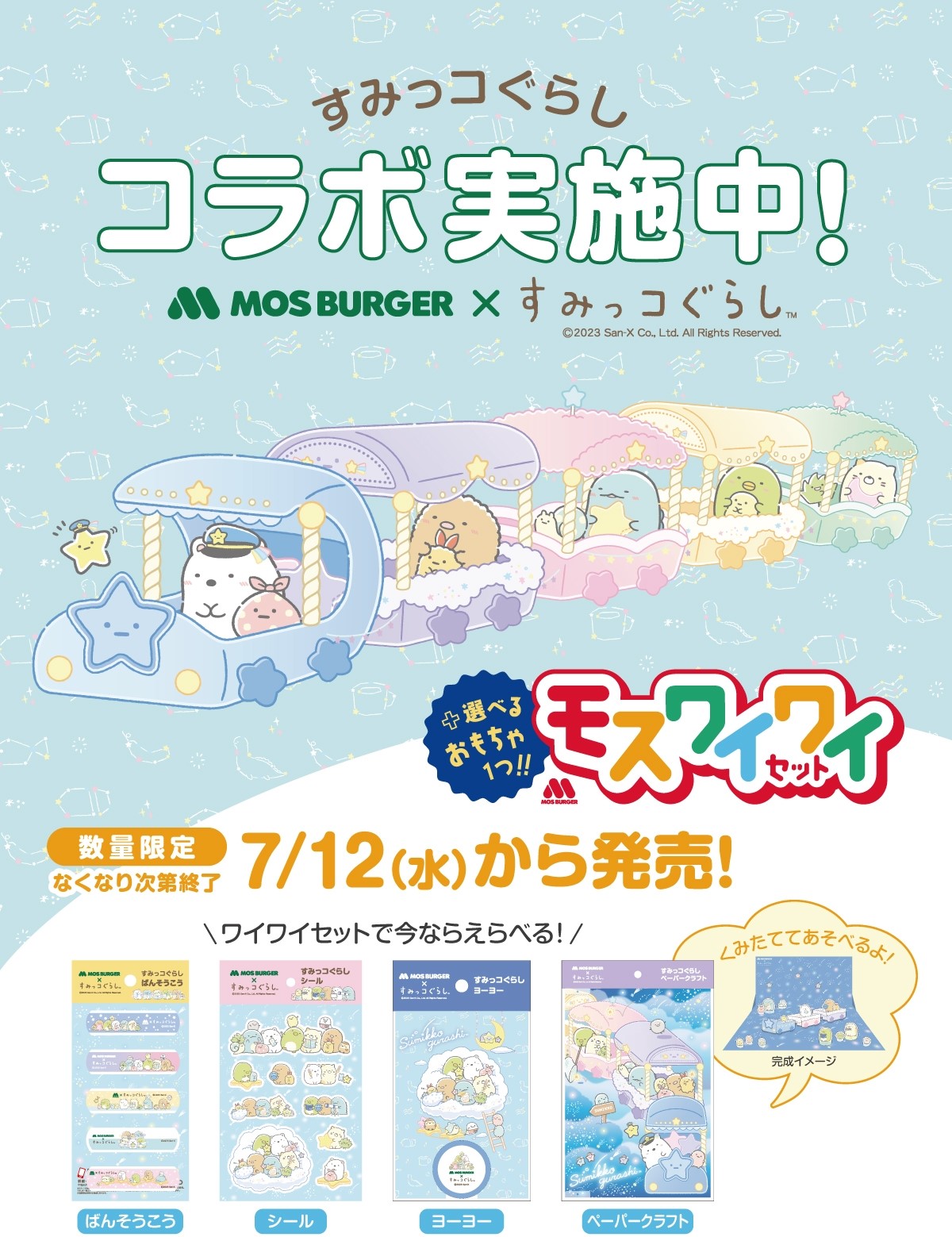 モスバーガーと「すみっコぐらし」がコラボ! 「モスワイワイセット」のコラボおもちゃが7月12日より登場