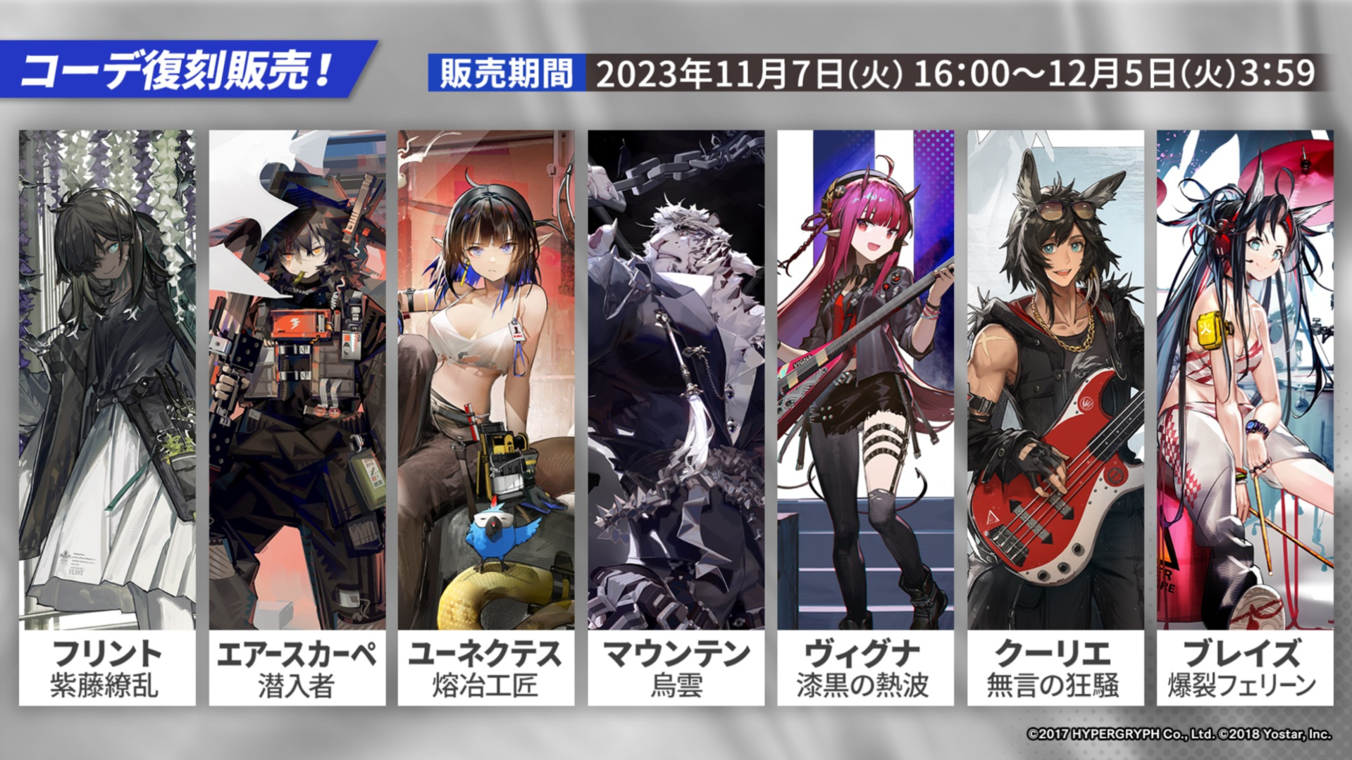 (C)2017 HYPERGRYPH. All rights reserved./(C)2018 Yostar, Inc. All rights reserved.