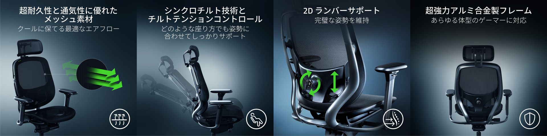Razer初メッシュ素材使用ゲーミングチェア「Razer Fujin Pro」予約開始(2/10)