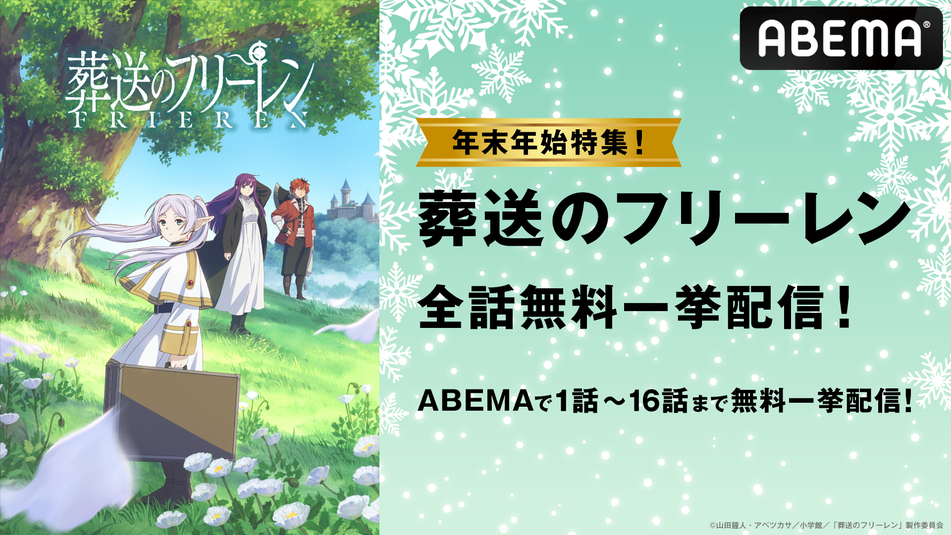 「葬送のフリーレン」公式によるクリスマスイラストを公開。フリーレンやヒンメルたちのクリスマス姿が描かれる
