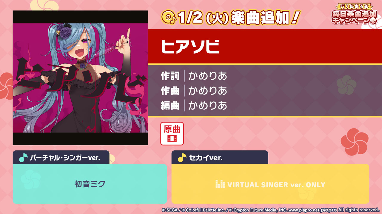 ©SEGA/©Colorful Palette Inc./©Crypton Future Media, INC. www.piapro.net All rights reserved.