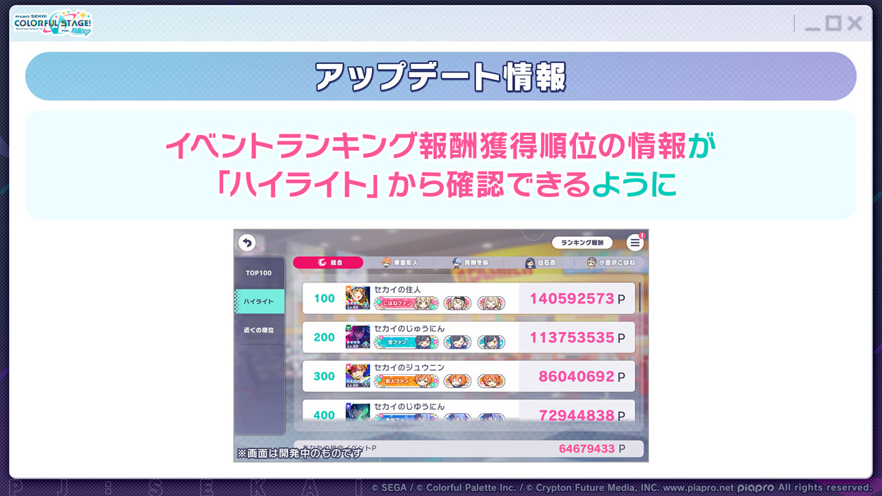 ©SEGA/©Colorful Palette Inc./©Crypton Future Media, INC. www.piapro.net All rights reserved.