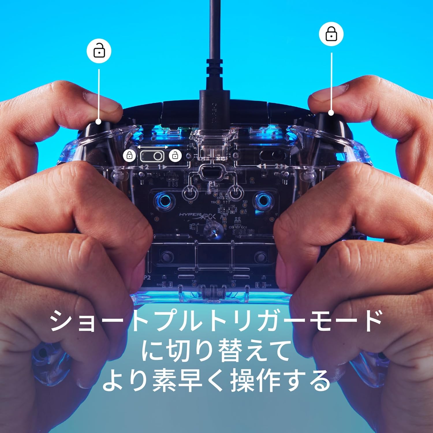 • HyperX Clutch Gladiate RGB 有線コントローラー Xbox公式認定 デュアルトリガーロック プログラマブルボタン デュアルランブルモーター クリアカラー 【日本正規代理店品】 7D6H2AA