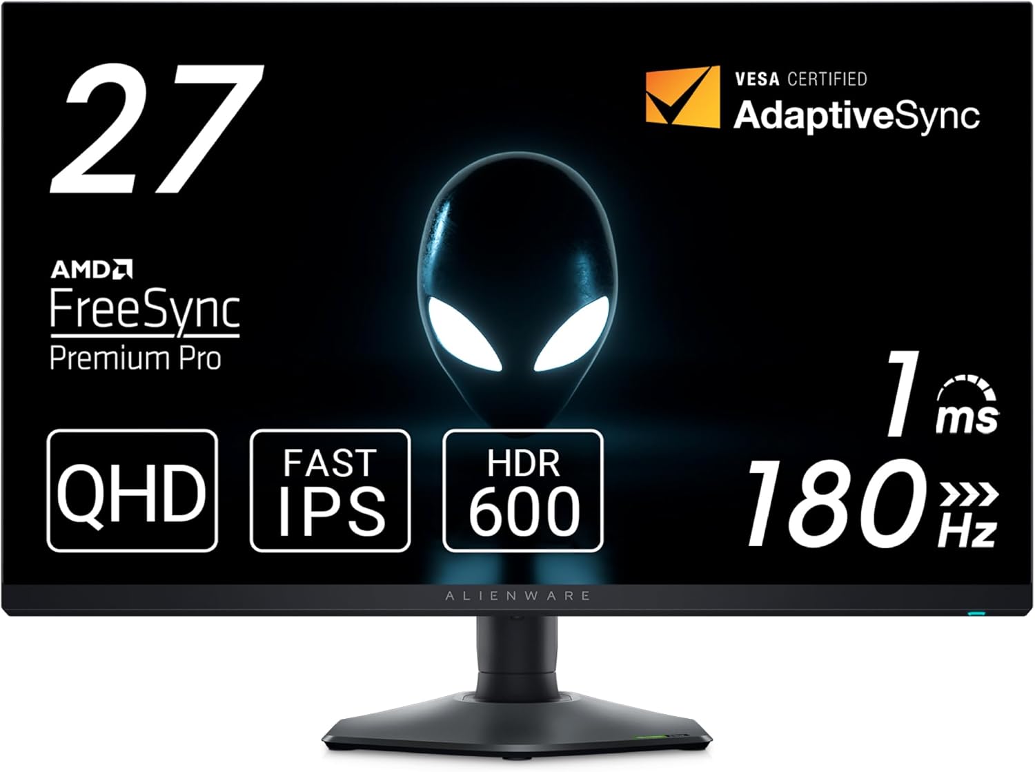 • Dell AW2724DM 27インチ Alienware ゲーミングモニター(無輝点3年保証/QHD/Fast IPS,非光沢/DP×2,HDMI/DCI-P3 95%/縦横回転,高さ調整/1ms/180HzG-SYNC Compatible,FreeSync Premium Pro,DisplayHDR 600)