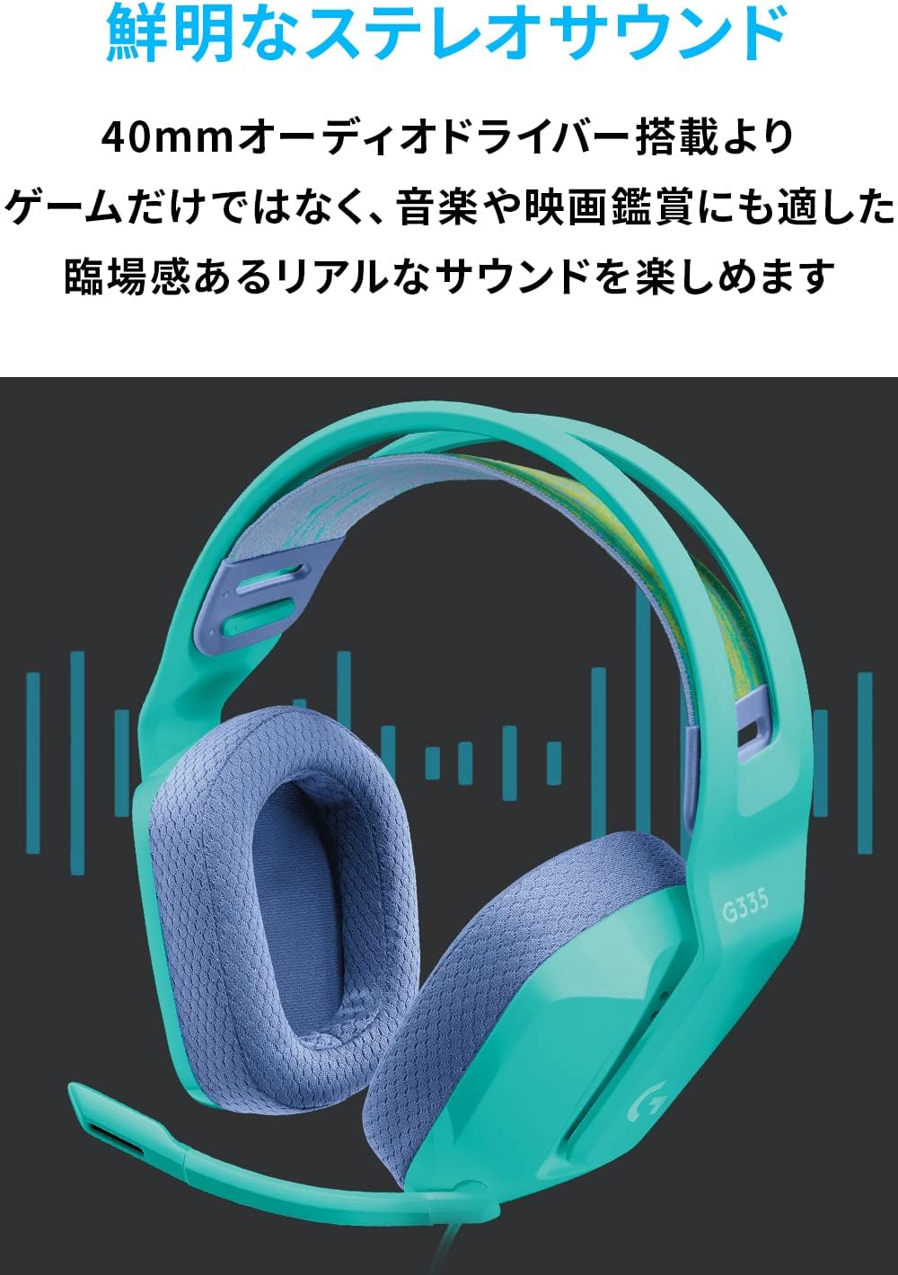 • Logicool G ゲーミングヘッドセット G335 ゲーミング ヘッドセット G335MN 超軽量 222g 3.5mm 有線 立体音響 ステレオ 2.1ch フリップミュート マイク付き PS5 PS4 PC Switch Xbox スマホ 対応 ヘッドホン ヘッドフォン ミント 国内正規品