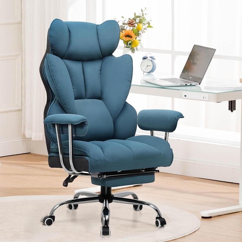 • GTRACING ゲーミングチェア ファブリック オットマン【ふわふわPP綿採用】 【安心の非再生ウレタン採用】【ポケットコイル採用】 分区サポート 肉厚クッション 140度リクライニング 広い座面 ハイバック 高さ調節 200-BLUE