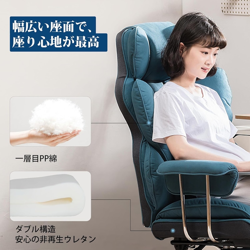 • GTRACING ゲーミングチェア ファブリック オットマン【ふわふわPP綿採用】 【安心の非再生ウレタン採用】【ポケットコイル採用】 分区サポート 肉厚クッション 140度リクライニング 広い座面 ハイバック 高さ調節 200-BLUE