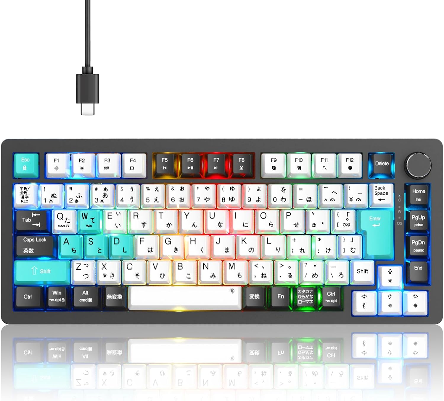 Amazonで購入メカニカルキーボード KB820【2025年業界オリジナル開発・日本語配列とカナ印字一体】75% ガスケットゲーミングキーボード 有線 着脱式 カスタマイズキーボード USB C/A両用 82キー PBTキーキャップ 押下圧 40G ノブ付き LEDバックライトMac/Windows対応 サテライト軸