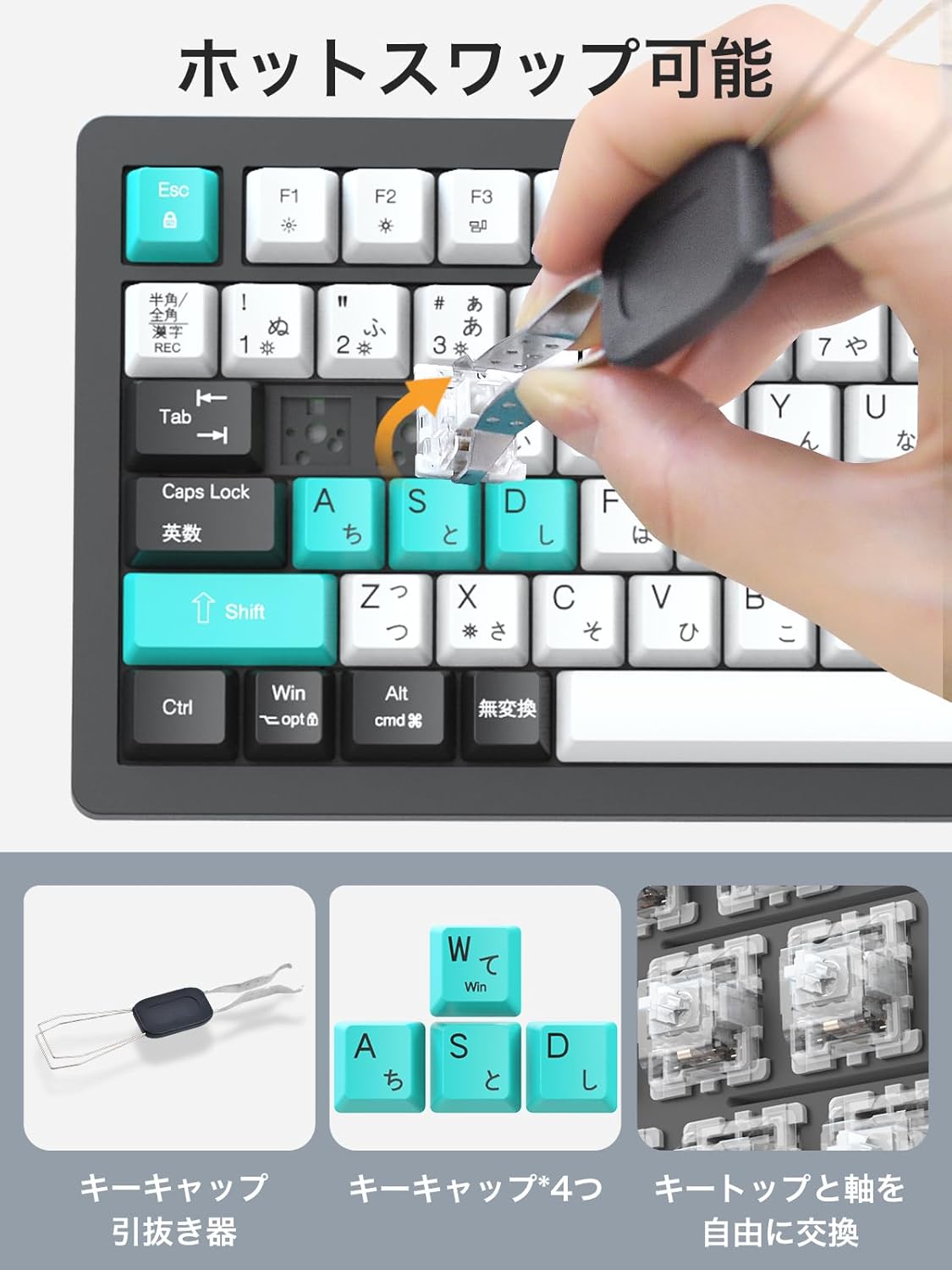 Amazonで購入メカニカルキーボード KB820【2025年業界オリジナル開発・日本語配列とカナ印字一体】75% ガスケットゲーミングキーボード 有線 着脱式 カスタマイズキーボード USB C/A両用 82キー PBTキーキャップ 押下圧 40G ノブ付き LEDバックライトMac/Windows対応 サテライト軸