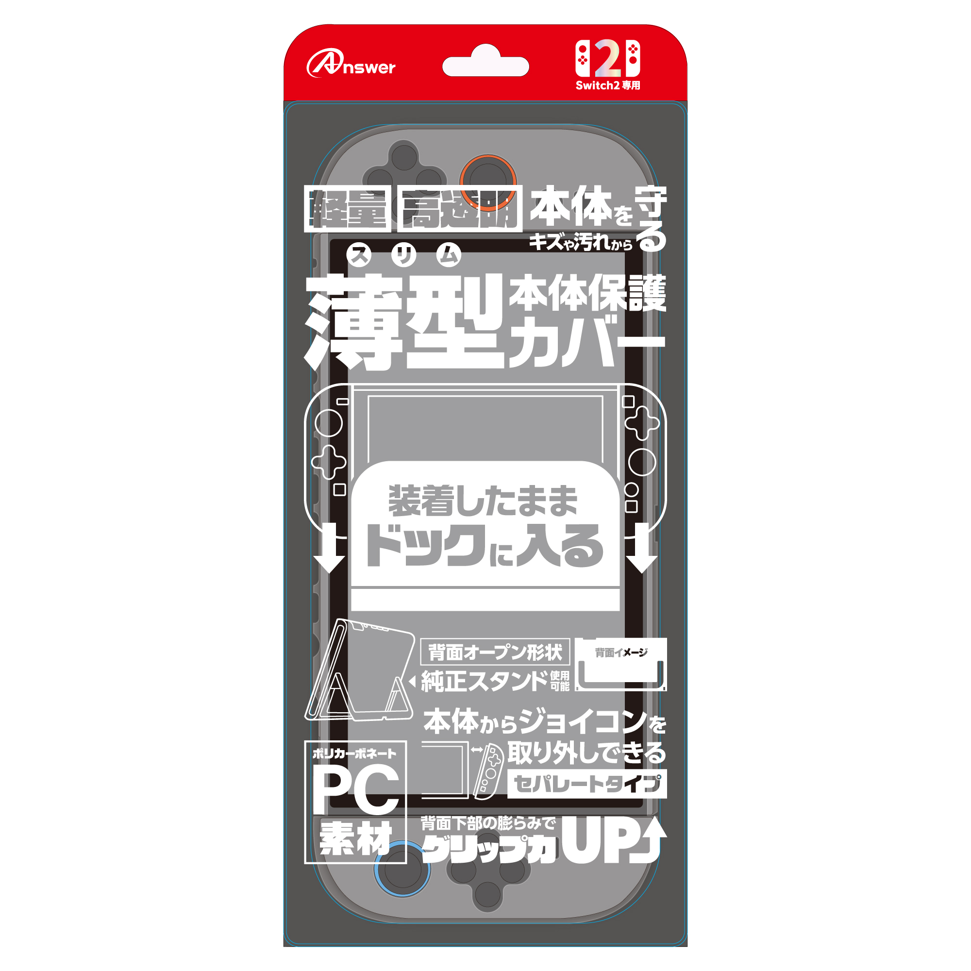 本製品は、アンサー株式会社のオリジナル製品であり、任天堂株式会社のライセンス製品ではありません。「Switch」「Switch2」「Switch Lite」「ドック」「Joy-Con」「Joy-Con2」「Pro コントローラー」は任天堂株式会社の登録商標です。その他の会社名、商品名は各社の商標、または登録商標です。