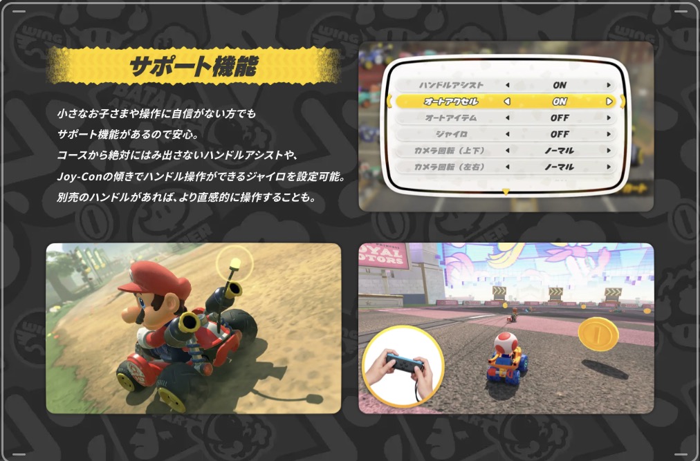 「マリオカート ワールド」、小さな子どもでも楽しめる「サポート機能」健在。コースアウトしないハンドルアシストなど(1/1)