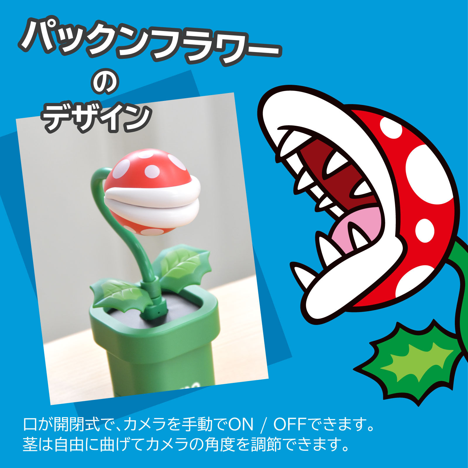 Switch2、パックンフラワー型のUSBカメラがホリから登場決定! 鉢植え型のスタンド付き