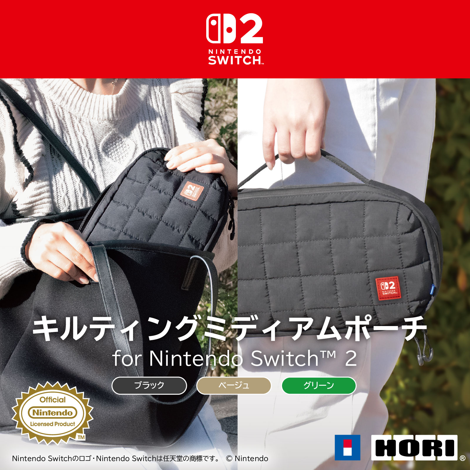 • キルティングミディアムポーチ for Nintendo Switch 2 ベージュ