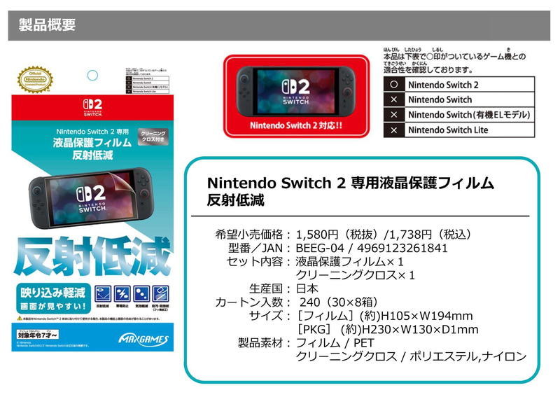 • 【任天堂ライセンス商品】Nintendo Switch 2 専用液晶保護フィルム 反射低減