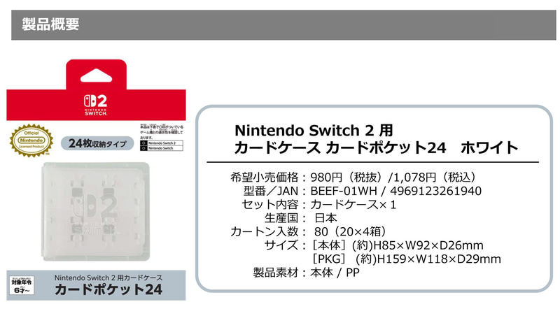 • 【任天堂ライセンス商品】Nintendo Switch 2 用カードケース カードポケット24 ホワイト