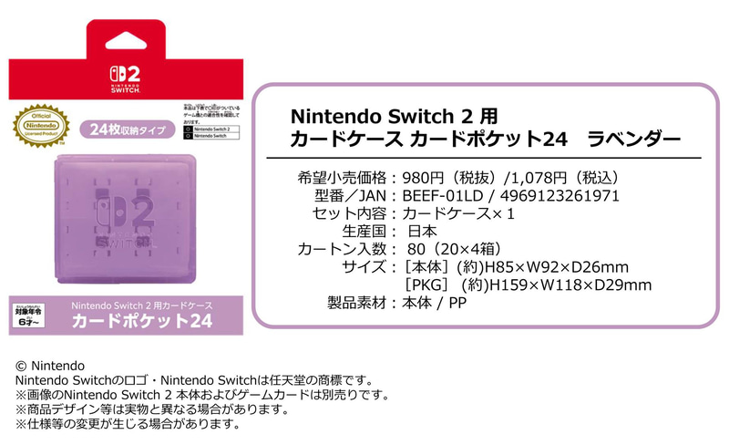 • 【任天堂ライセンス商品】Nintendo Switch 2 用カードケース カードポケット24 ラベンダー
