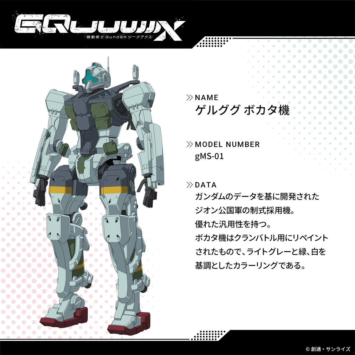 「機動戦士Gundam GQuuuuuuX」3Dモデルのターンテーブル動画第10弾が公開。「軍警ザク 特殊部隊仕様」の3Dモデルが登場