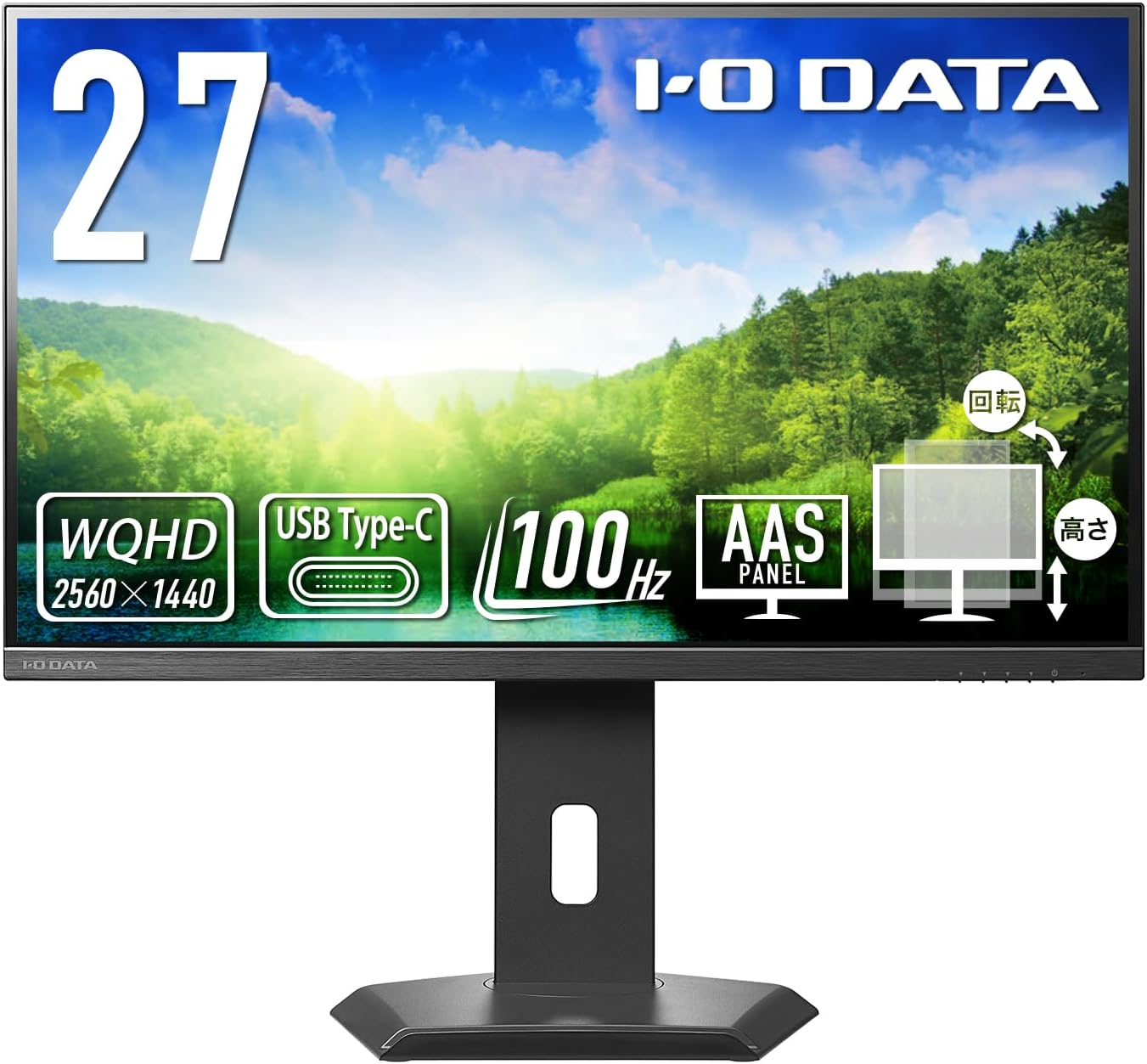 • IODATA モニター 27インチ WQHD 100Hz USBハブ 搭載 縦横回転 AASパネル 非光沢 ブラック 省スペース (HDMI×1/DisplayPort×1/USB-C×1/USB-A×3/スピーカー付/高さ調整/VESA対応/土日サポート/日本メーカー) EX-CQ270SA-F