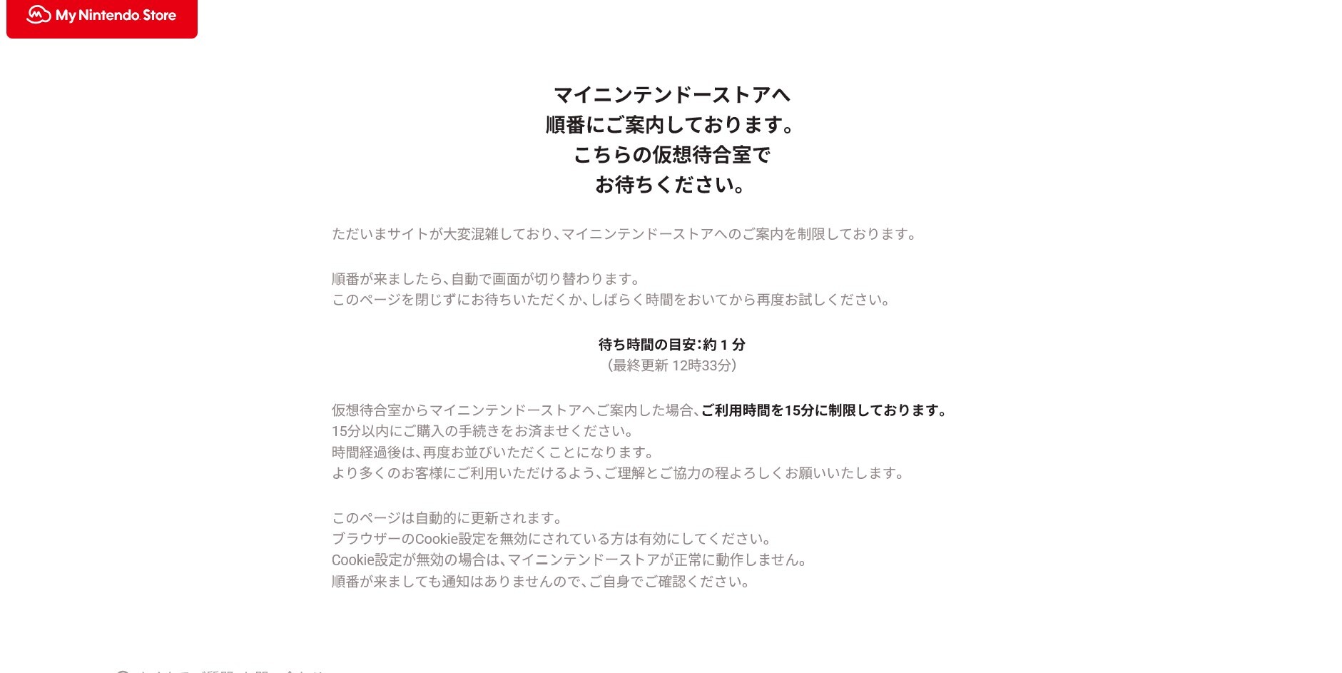 Switch2購入手続き開始の影響か。マイニンテンドーストア混雑で利用時間を15分に制限(2/3)