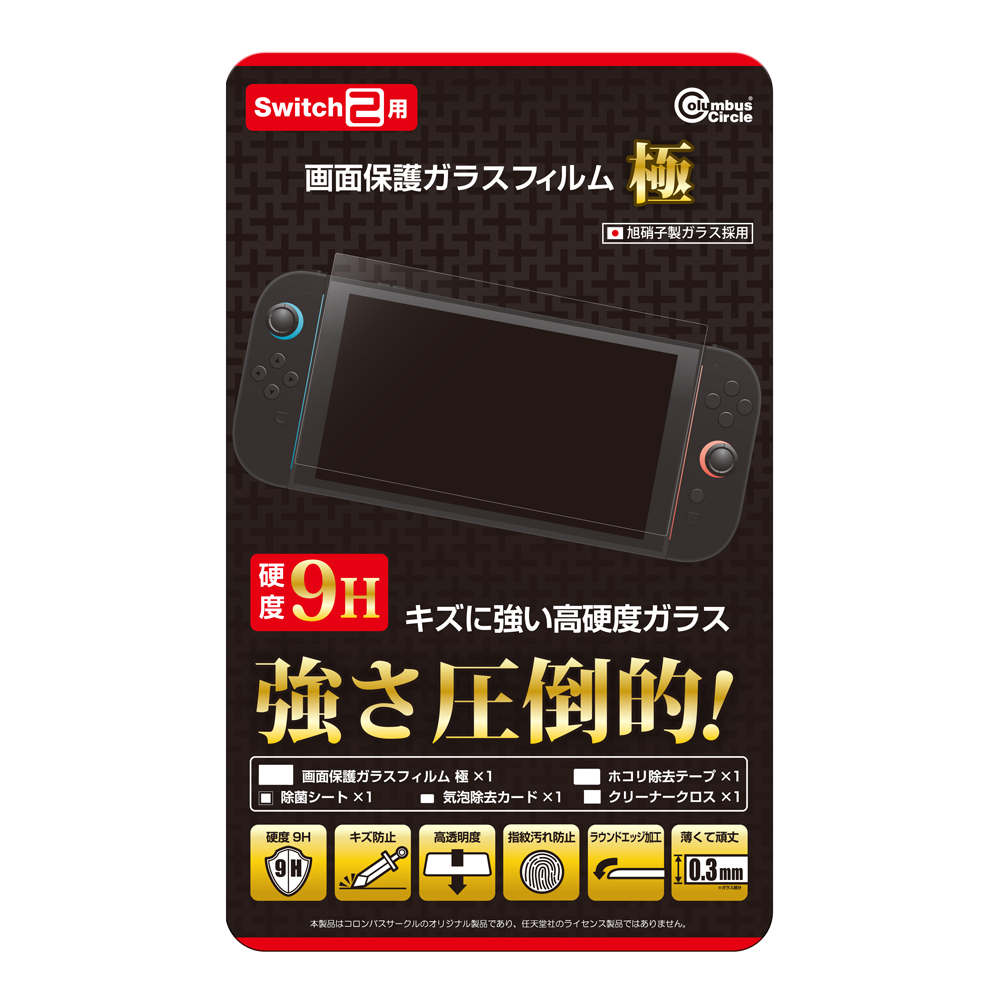 • コロンバスサークル(Switch2用)画面保護ガラスフィルム 極 -キズに圧倒的に強い硬度9H+貼りやすい+透明度の高いガラスフィルム