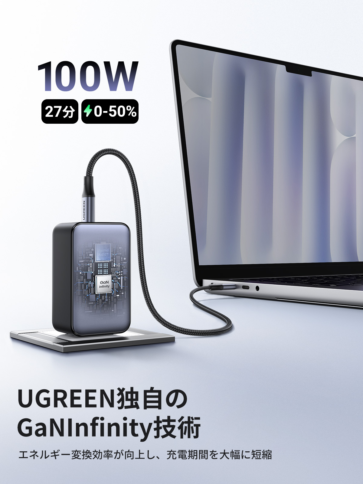 • UGREEN 130W 20000mAh モバイルバッテリー ケーブル付き PB723