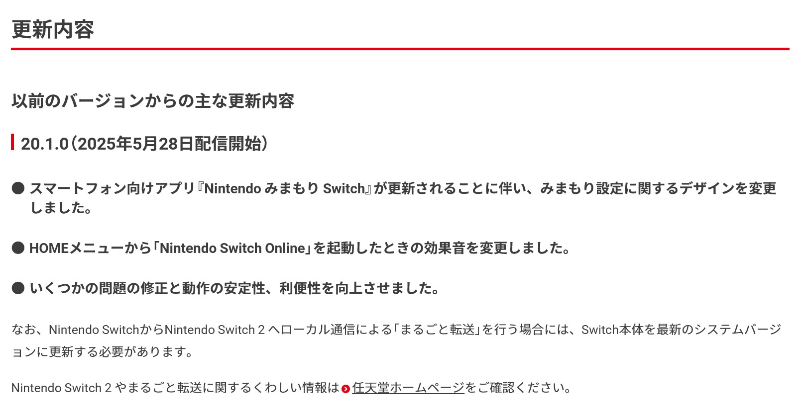 Switch2の更新データ「バージョン20.2.0」が本日7月15日に配信