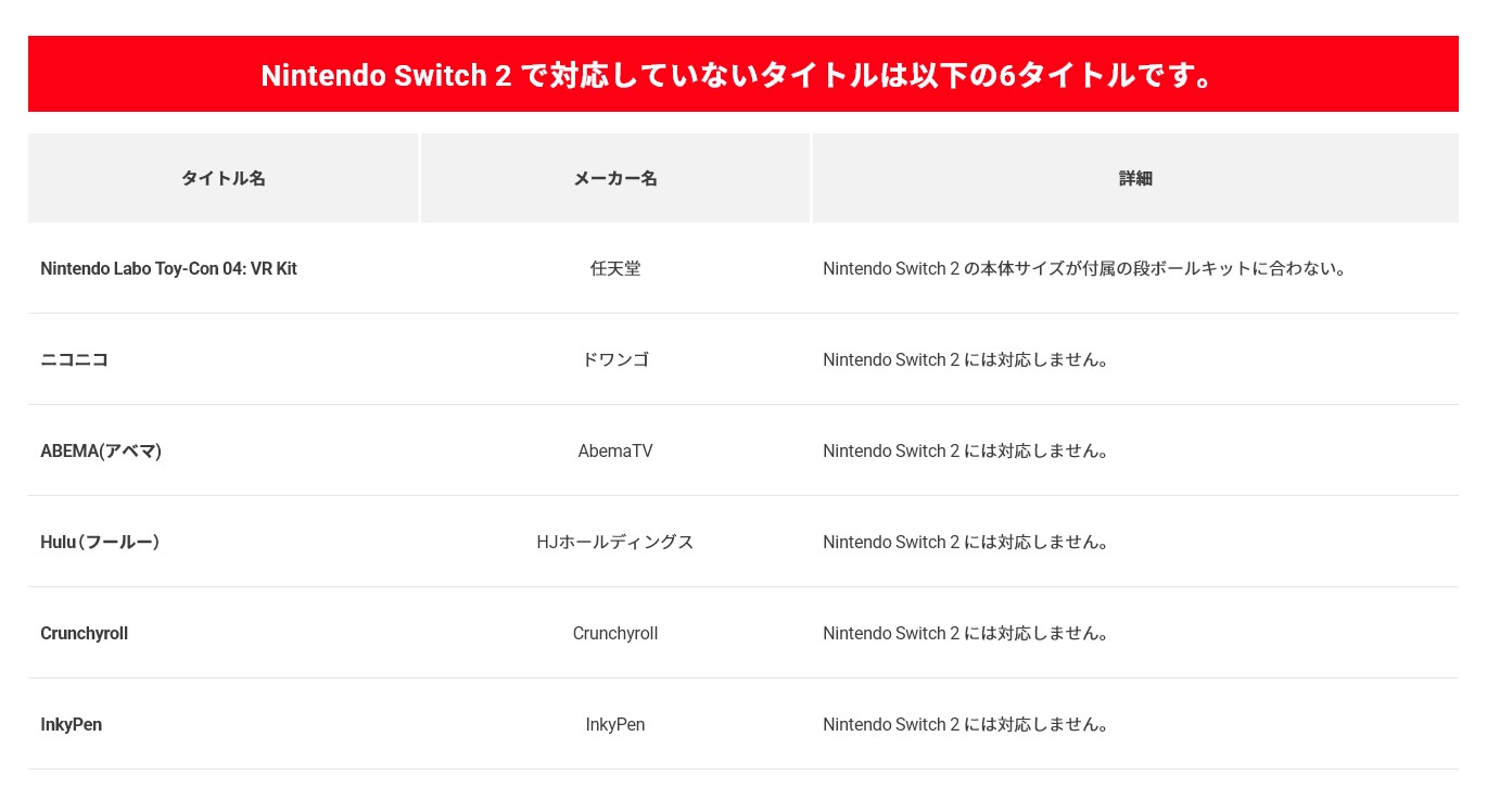 Switch2、初代Switchタイトルとの互換性情報を更新。「ニコニコ」や「ABEMA」など計6タイトルが非対応に(3/3)