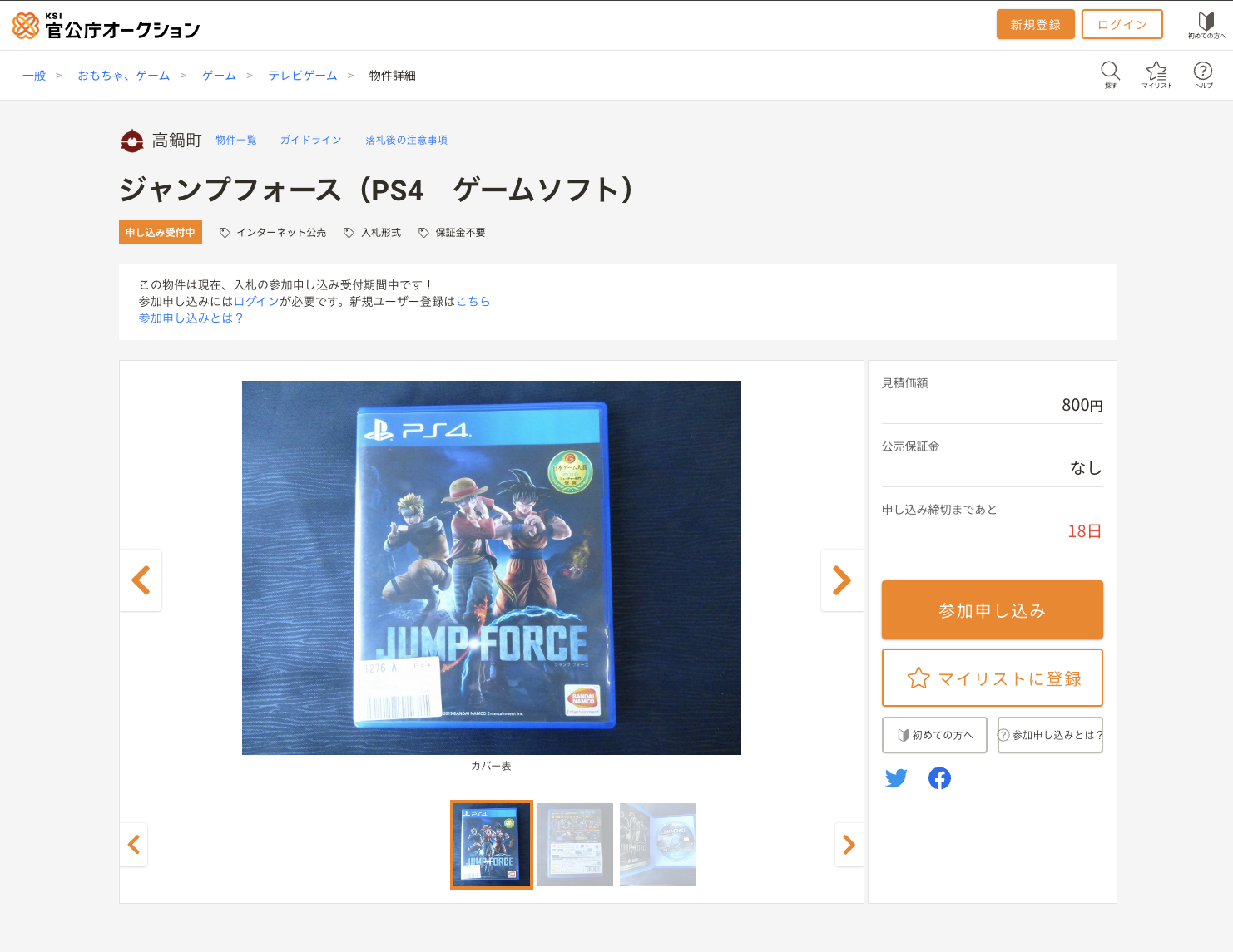 官公庁オークションにゲーム機本体やゲームソフトが出品中