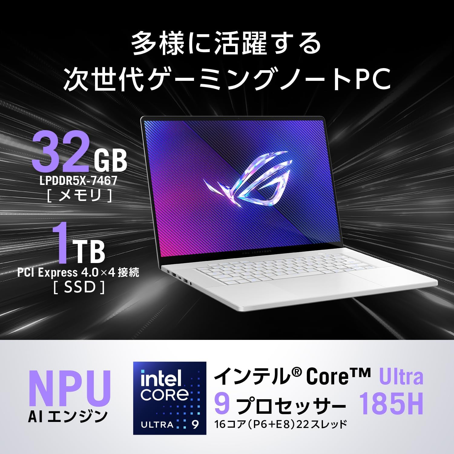 • ASUS ゲーミングノートPC ROG Zephyrus G16 GU605MI 16.0型 RTX 4070 Core Ultra 9 185H メモリ32GB SSD1TB リフレッシュレート240Hz RGB イルミネートキーボード Windows11 動画編集 Xbox Game Pass 3ヶ月利用権付き GU605MI-U9R4070W