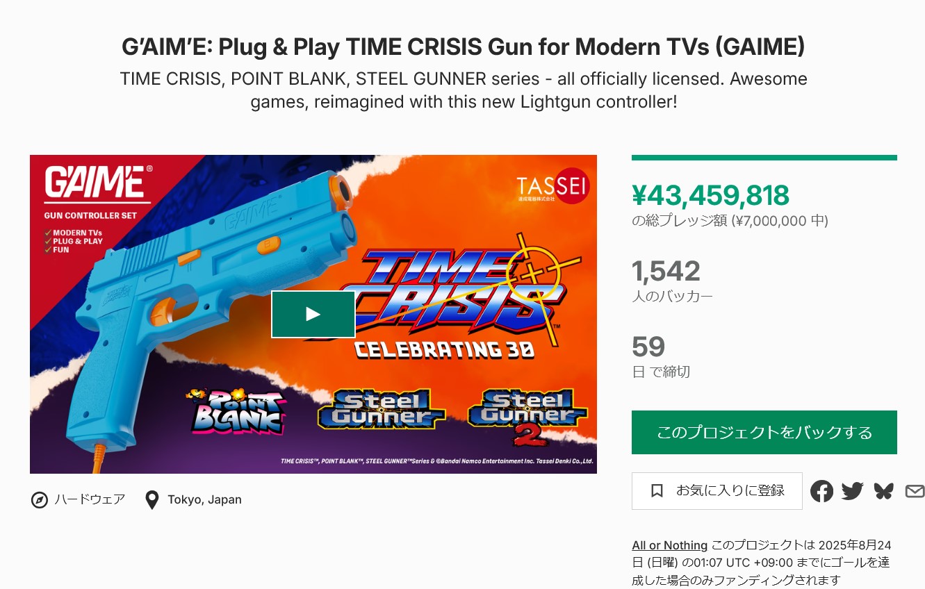 「G'AIM'E タイムクライシス」のクラウドファンディングが開始10分で目標達成!(2/2)