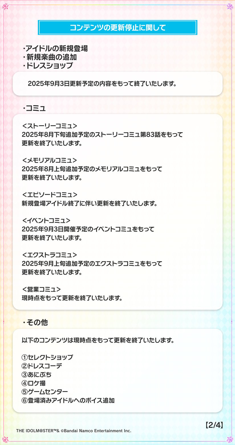 「デレステ」2025年10月以降サービスの開発・運用体制変更を発表。変更に伴いPC版のサービス終了、有償スタージュエルの販売内容変更など公開(3/5)