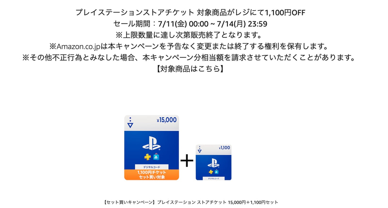 • 【セット買いキャンペーン】プレイステーション ストアチケット 15,000円+1,100円セット