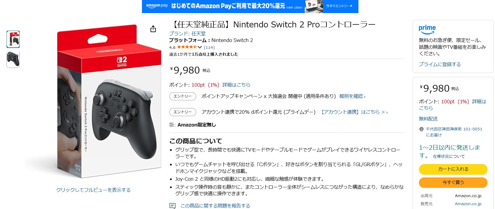 Amazon、Switch2用プロコンの定価販売を実施。本日7月8日11時頃(2/2)