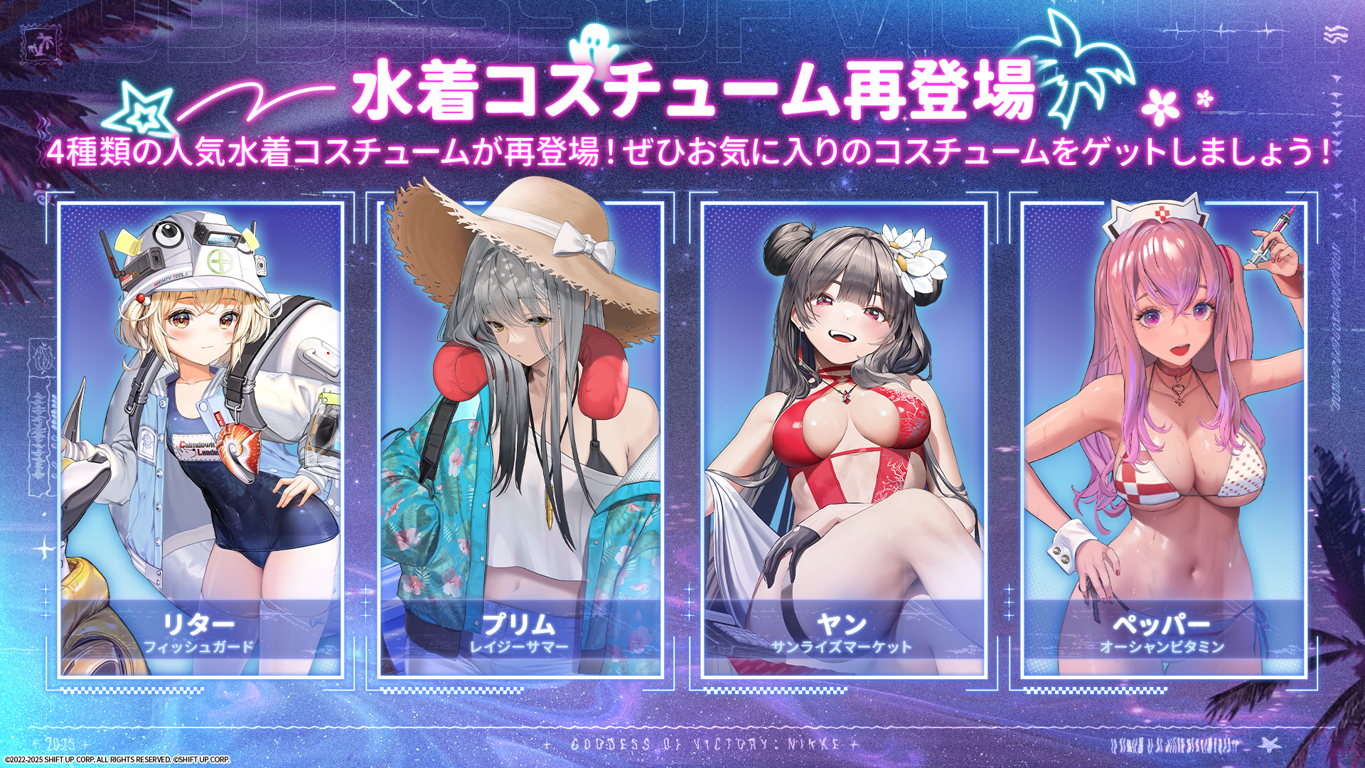 「NIKKE」、水着コス「ラピ:レッドフード」「トーブ」「ジュリア」発表(5/8)
