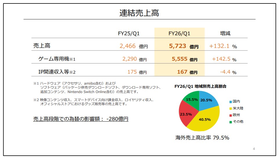 Switch2、全世界の販売台数は600万台以上に。任天堂が2026年3月期第1四半期決算を公開(3/5)