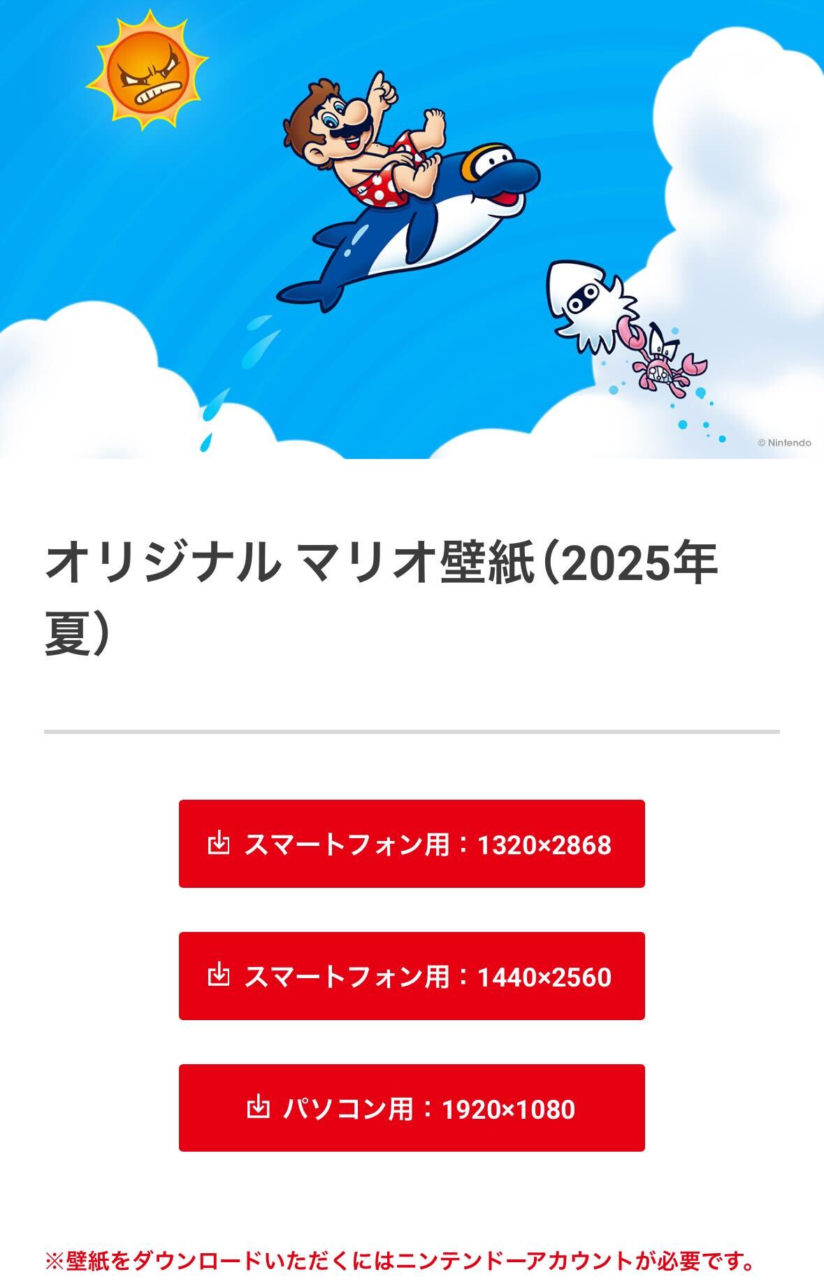 任天堂から夏のご挨拶。マリオの夏デザイン壁紙がマイニンテンドーにて8月31日まで無料配布中