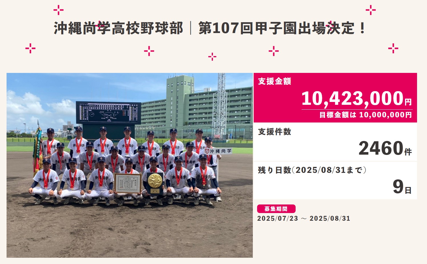 沖縄尚学高校野球部、甲子園出場の遠征費など支援を集ったクラウドファンディングの目標額達成!(1/2)