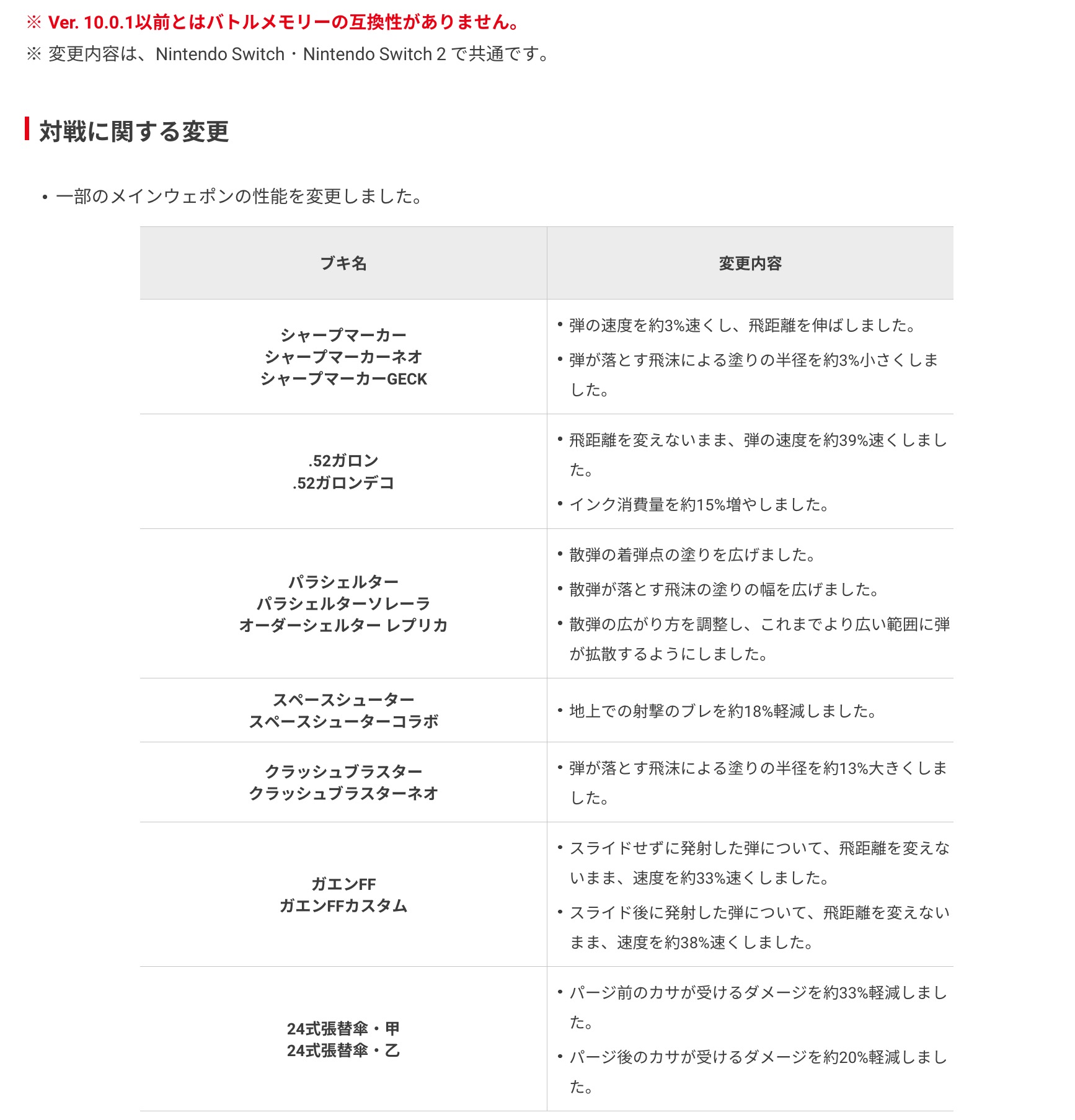 「スプラ3」で“意図しないブキの性能変更”があったことを発表。次の更新データの一部が誤って含まれる
