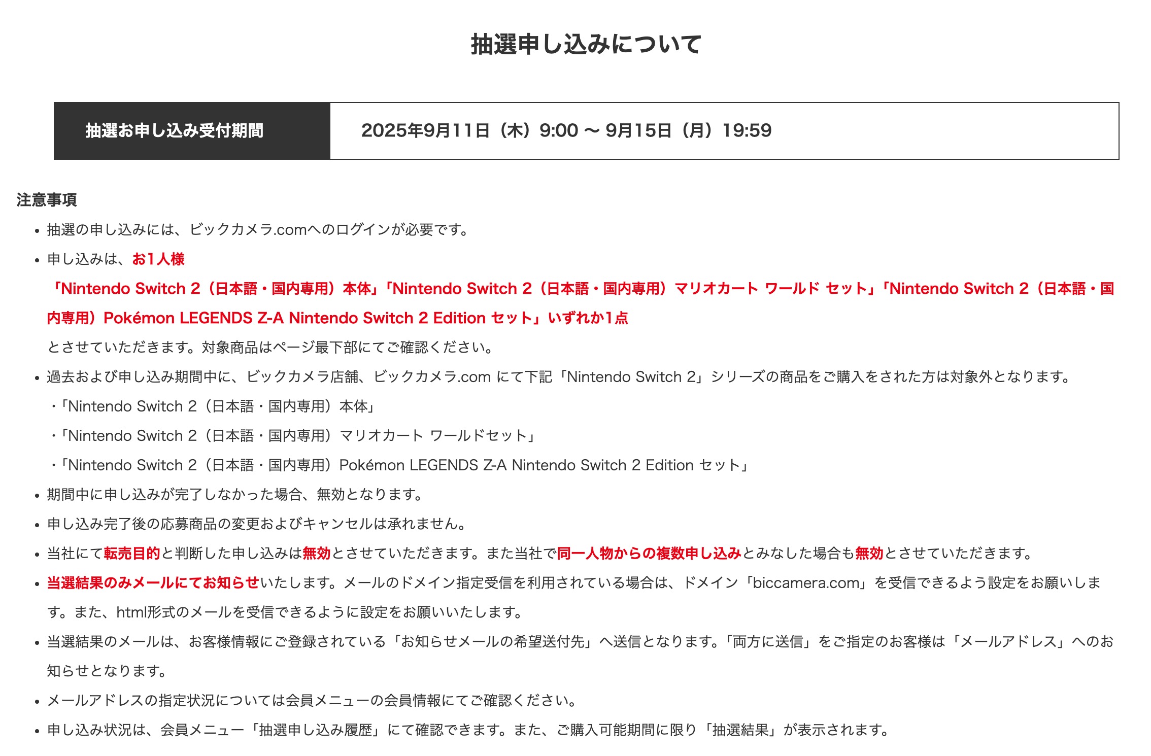 ビックカメラ.com「Switch2 ポケモンレジェンズZAセット」の抽選受付は本日19時59分まで(3/6)