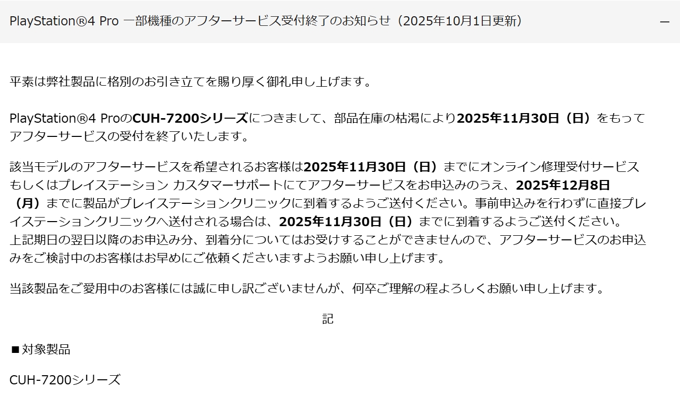 PS4Proのアフターサービスが11月30日に終了。対象は「CUH-7200シリーズ」(2/2)