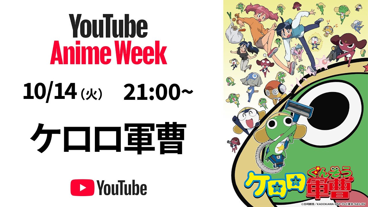 YouTubeにてアニメが30作以上公開! 「ケロロ」「ギアス」など旧作だけでなく「野原ひろし」「ヒロアカ」など秋の新作も(4/6)